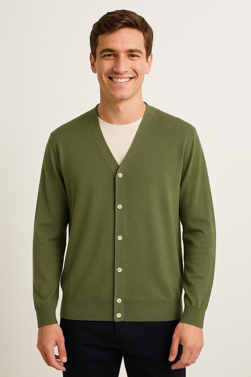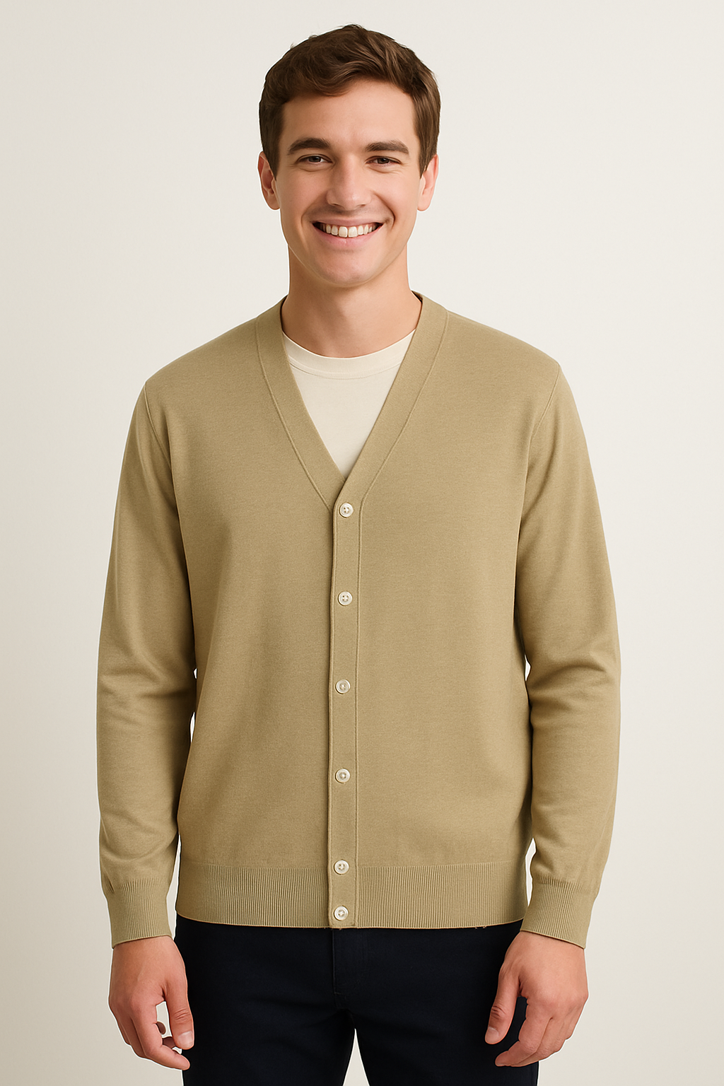 Ergänzen Sie Ihre Grundausstattung – mit der Adam Strickjacke mit V-Ausschnitt und Knöpfen.