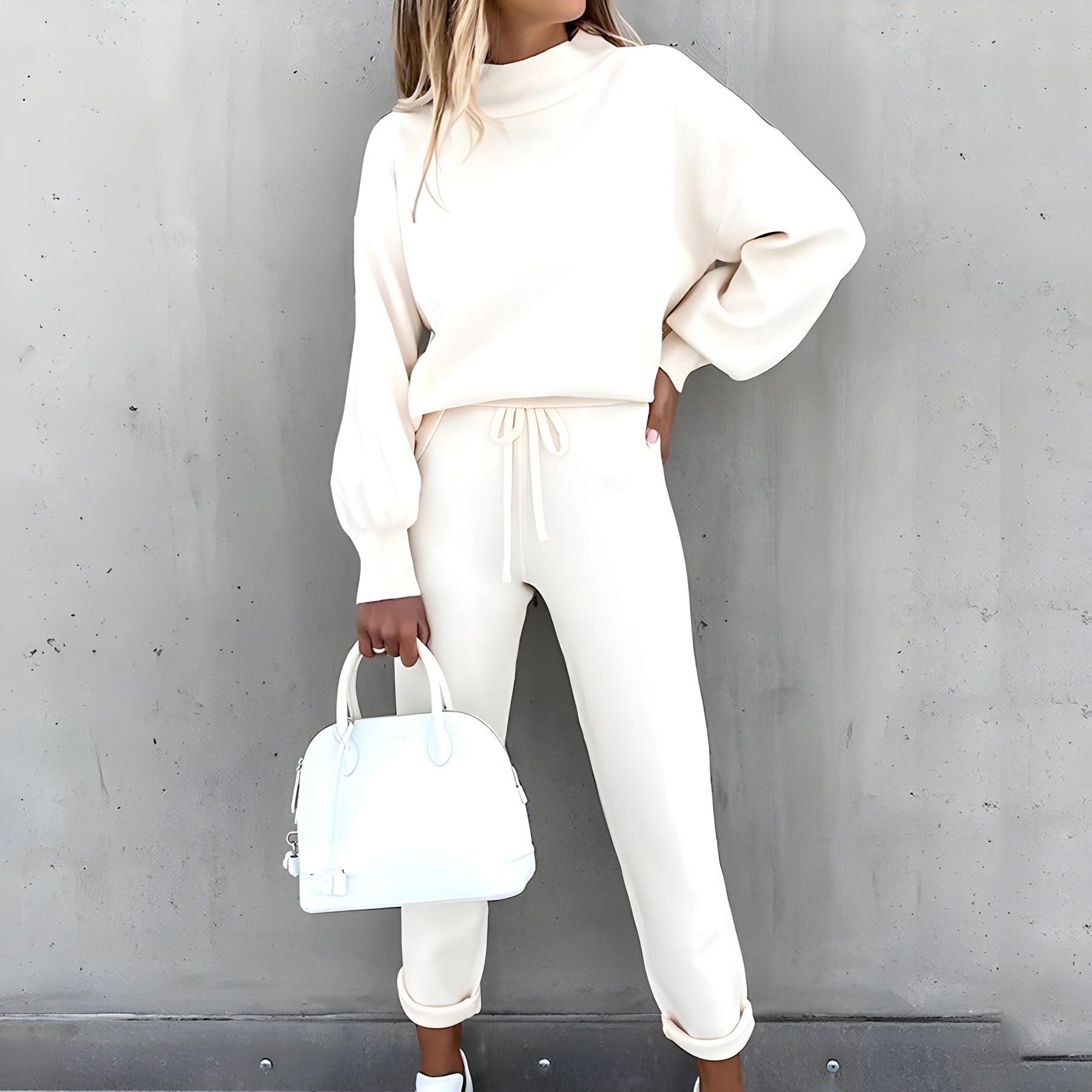 Der oversized Pullover mit Rollkragen und Laternenärmeln bietet eine lockere Passform, die dir Bewegungsfreiheit gibt und dich gleichzeitig warm hält.