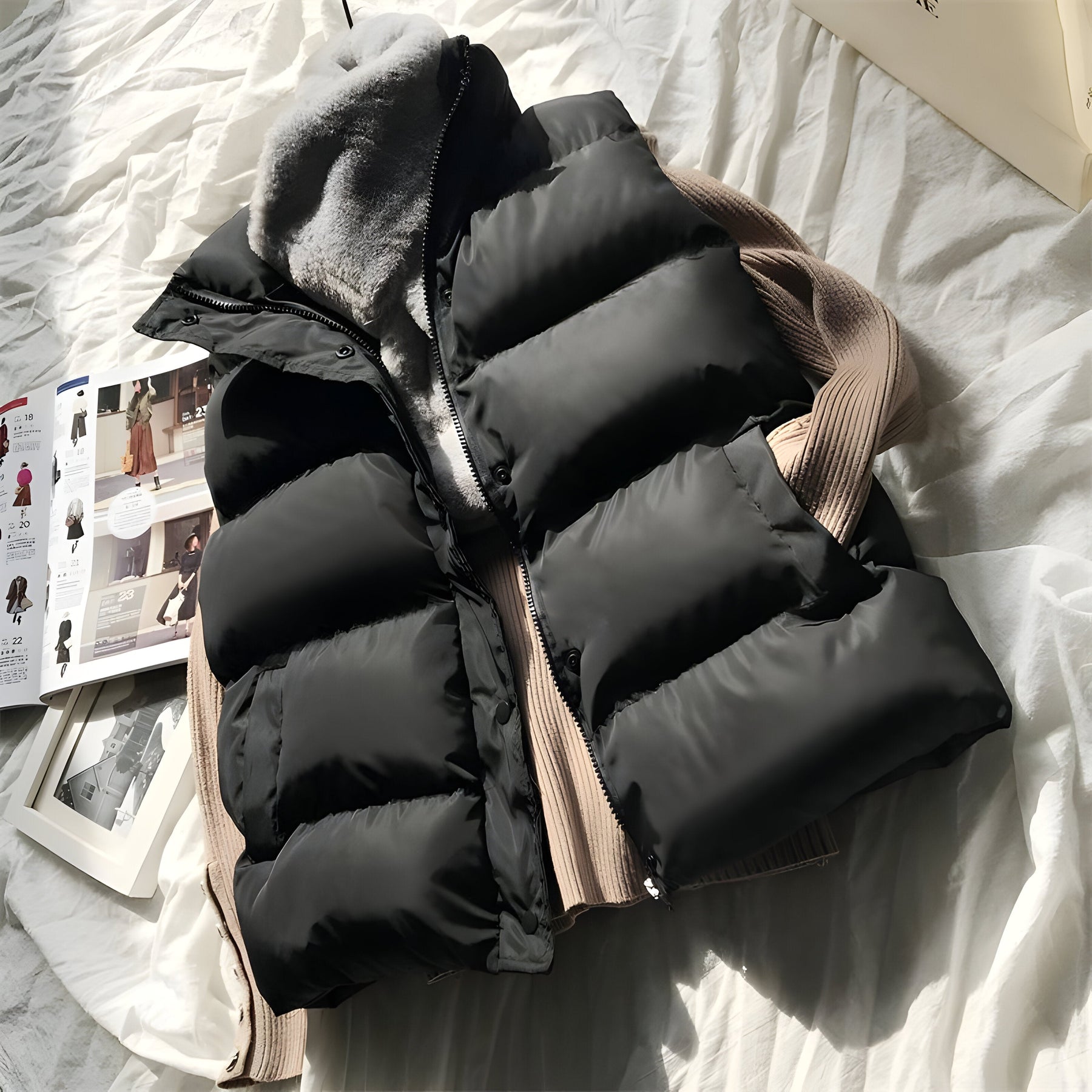Mit ihrem weichen Futter und dem hohen Kragen hält dich diese Weste auch an kühleren Frühlingstagen schön warm und gemütlich.