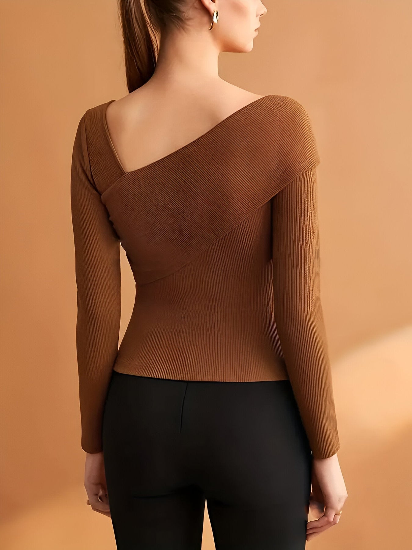 Stell dir vor, du schlüpfst in ein elegantes Longsleeve, das deinen Stil unterstreicht und dich den ganzen Tag über bequem hält. Der asymmetrische Ausschnitt und der gerippte Stoff machen dieses Teil zu einem echten Hingucker – perfekt, um in die kühleren Monate zu wechseln und dabei modisch zu bleiben.