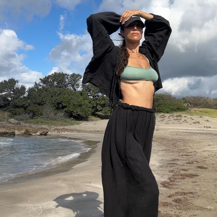 Lassen Sie sich in diesem Sommer von einem zweiteiligen Ensemble aus Leinen verzaubern, das Natürlichkeit und Raffinesse ausstrahlt. Bestehend aus einem Oberteil mit verstellbaren Bändern und einem langen, locker sitzenden Rock, ist es die perfekte Wahl für Frauen in Spanien, die Komfort suchen, ohne auf Stil zu verzichten. Ideal für heiße Tage, Strandspaziergänge oder zwangloses Beisammensein mit einem Hauch von Schick.