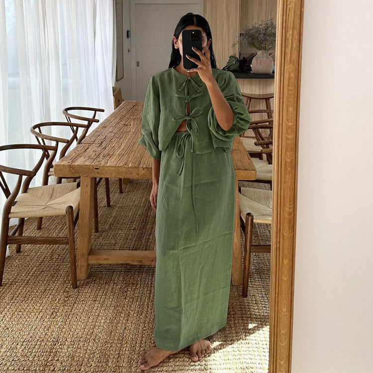 April - Zweiteiliges Leinenset mit verstellbaren Bändern