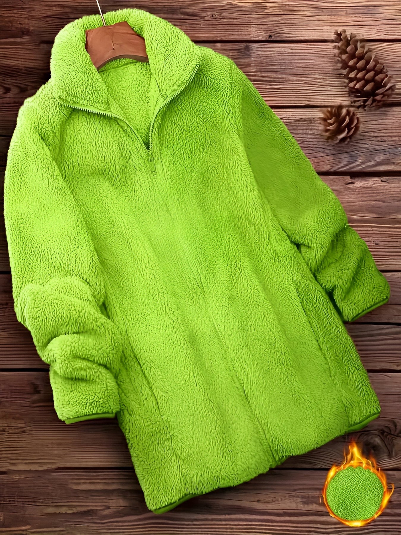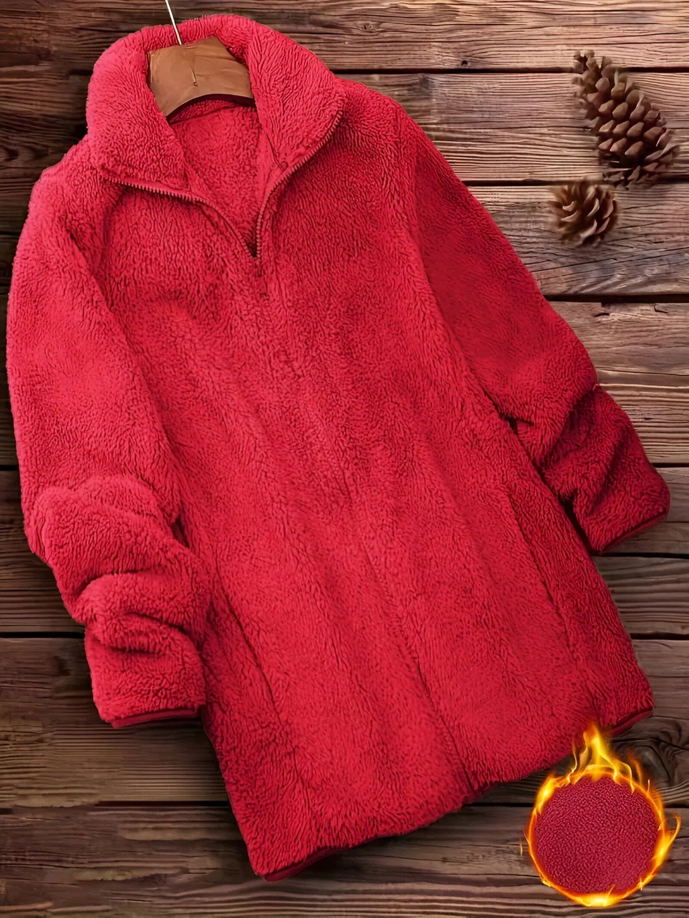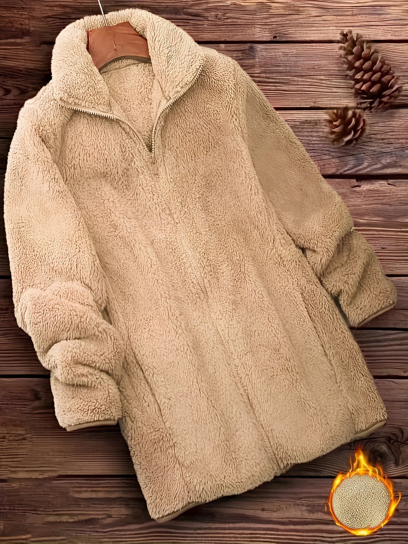 Der dicke, weiche Teddystoff hält dich warm, während das minimalistische Design dir einen modischen Look verleiht, der sich leicht mit deinen Lieblingsoutfits kombinieren lässt.