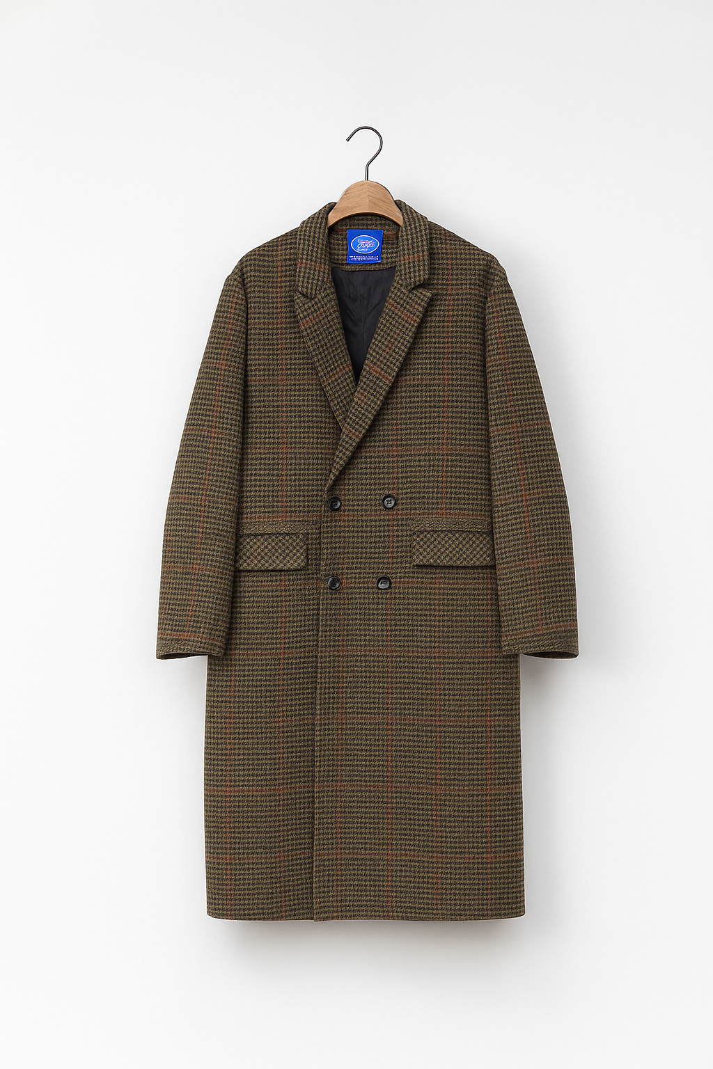 Mit seinem dichten Stoff, dem doppelreihigen Verschluss und dem zeitlosen Karomuster verbindet er Wärme mit Stil. Die lockere Passform sorgt für Komfort und lässt sich mühelos über mehrschichtigen Outfits tragen.