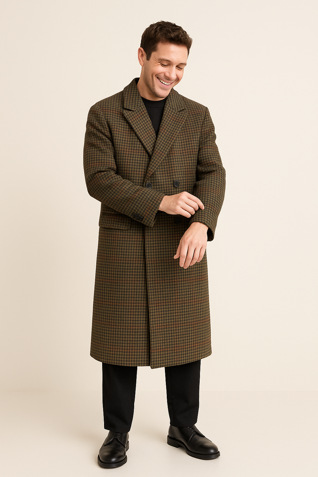 Investieren Sie in zeitlose Eleganz – mit dem zweireihigen Karomantel Caleb.