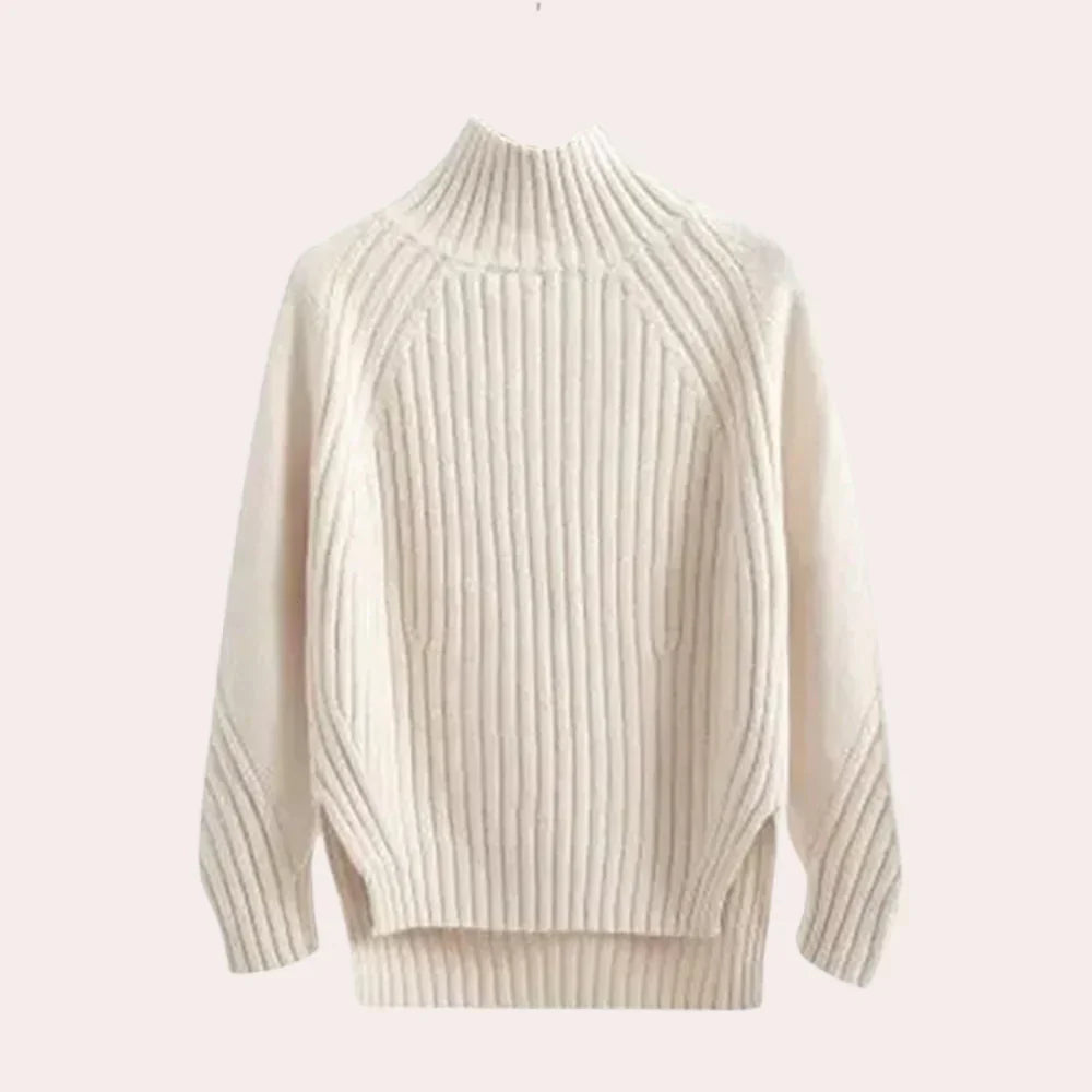 Catalina – stilvoller gestrickter Rollkragenpullover für Damen. Dieser elegante Rollkragenpullover mit Strickdesign bietet Wärme und eine bequeme Passform. Perfekt für einen schicken Winterlook.