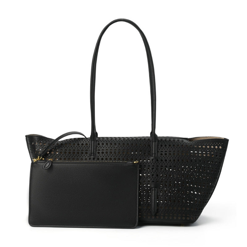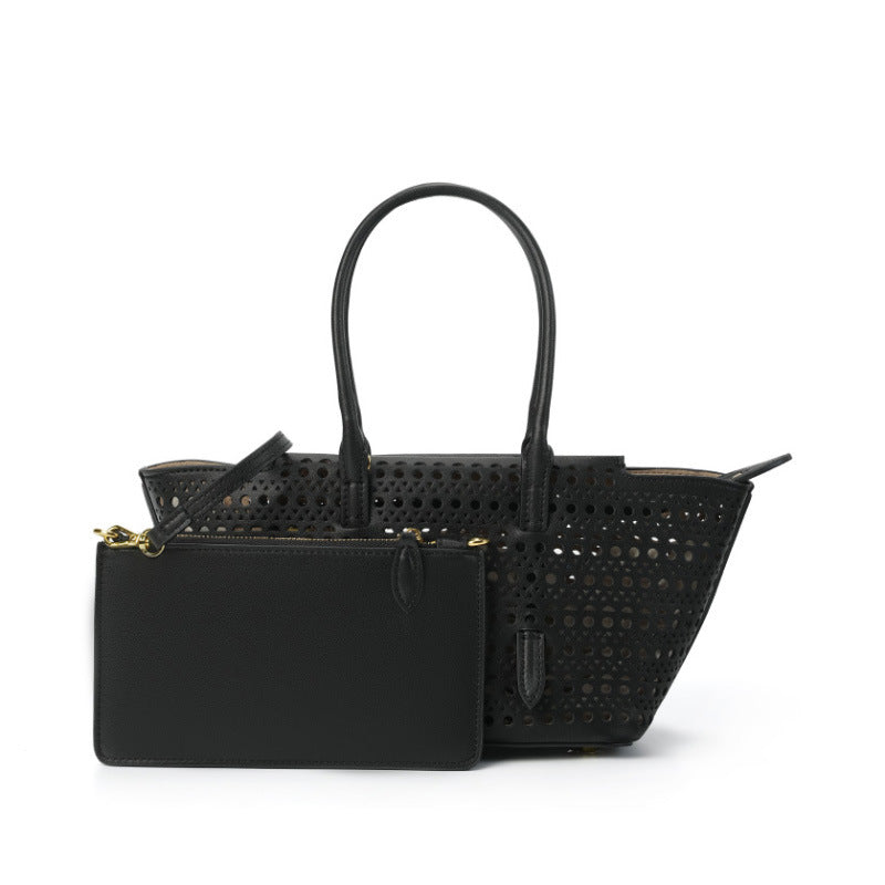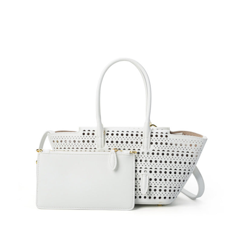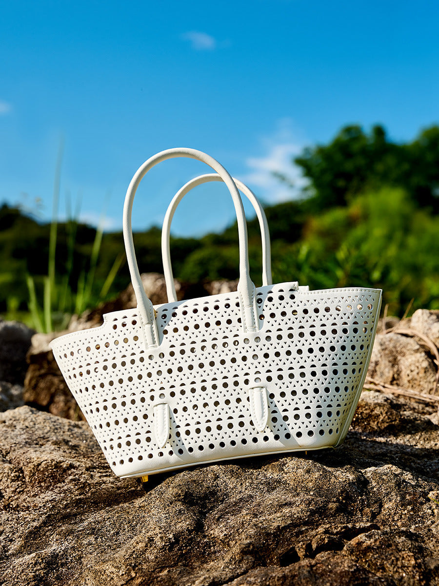 Elegante Shopper-Bag mit perforiertem Muster – modernes, luftiges Design kombiniert mit praktischer Funktionalität. Das zusätzliche Etui bietet Ordnung und Flexibilität. Perfekt geeignet für Alltag, Shopping oder Freizeit mit stilvollem Auftritt.
