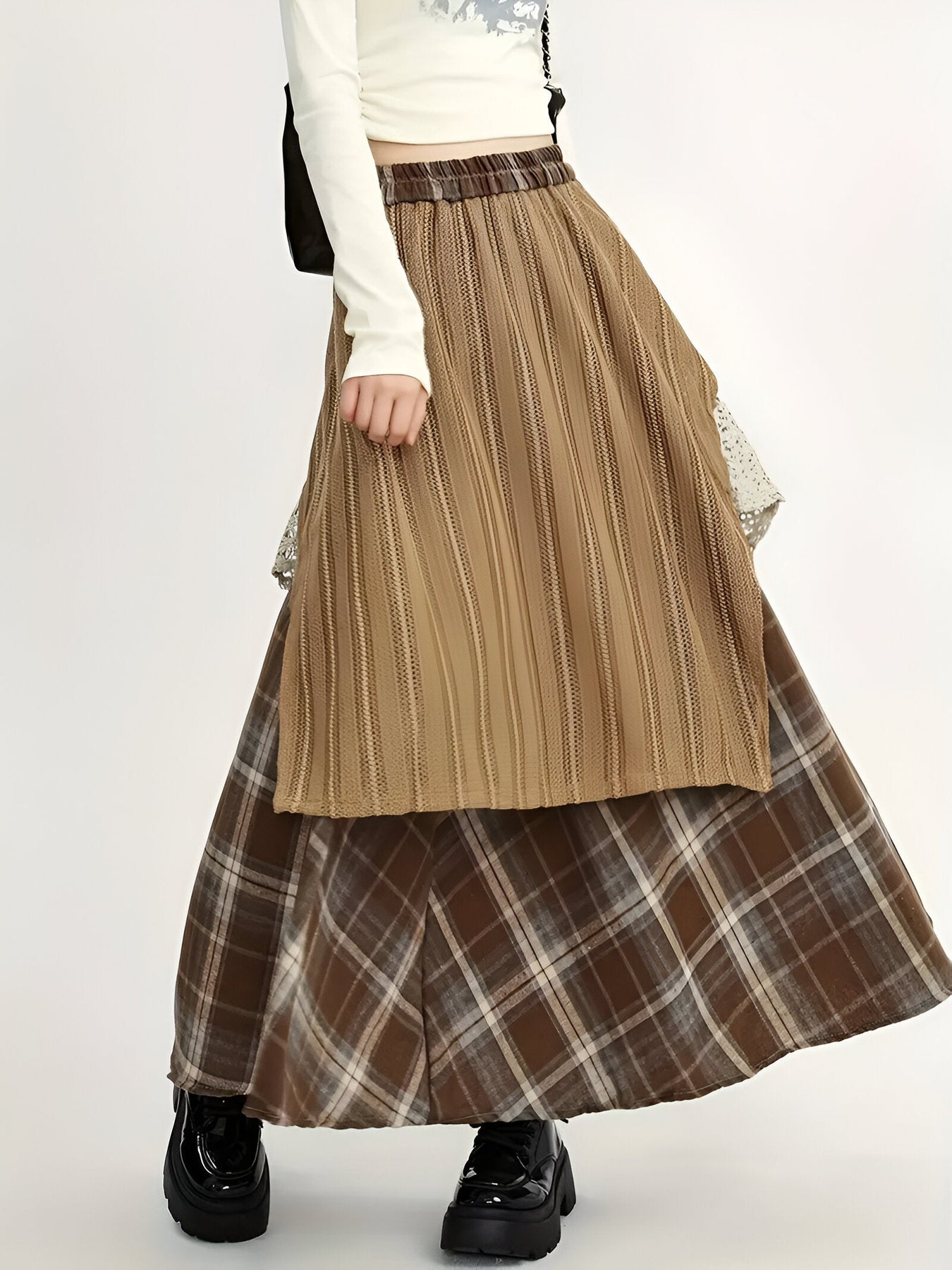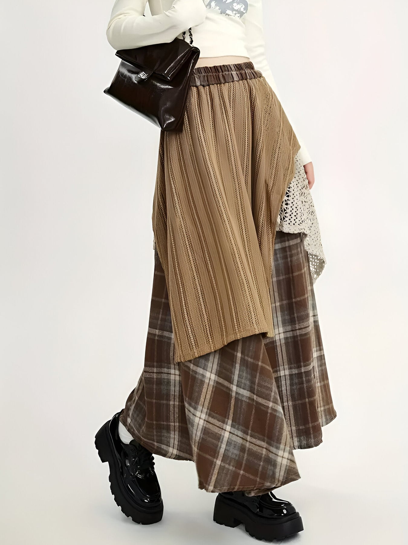 Hergestellt aus einer weichen Rayon/Viscose-Mischung bietet dieser Rock sowohl Komfort als auch Flexibilität. Der elastische Bund sorgt für die perfekte Passform, während die Gürtelschlaufen dir ermöglichen, deinen Look zu personalisieren. Ideal für entspannte Tage und Abendveranstaltungen, ist er ein unverzichtbares Kleidungsstück für Herbst und Winter.