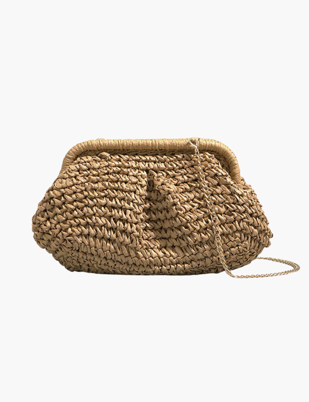 Erlebe mühelose Eleganz mit dieser Clutch-Tasche aus Stroh.