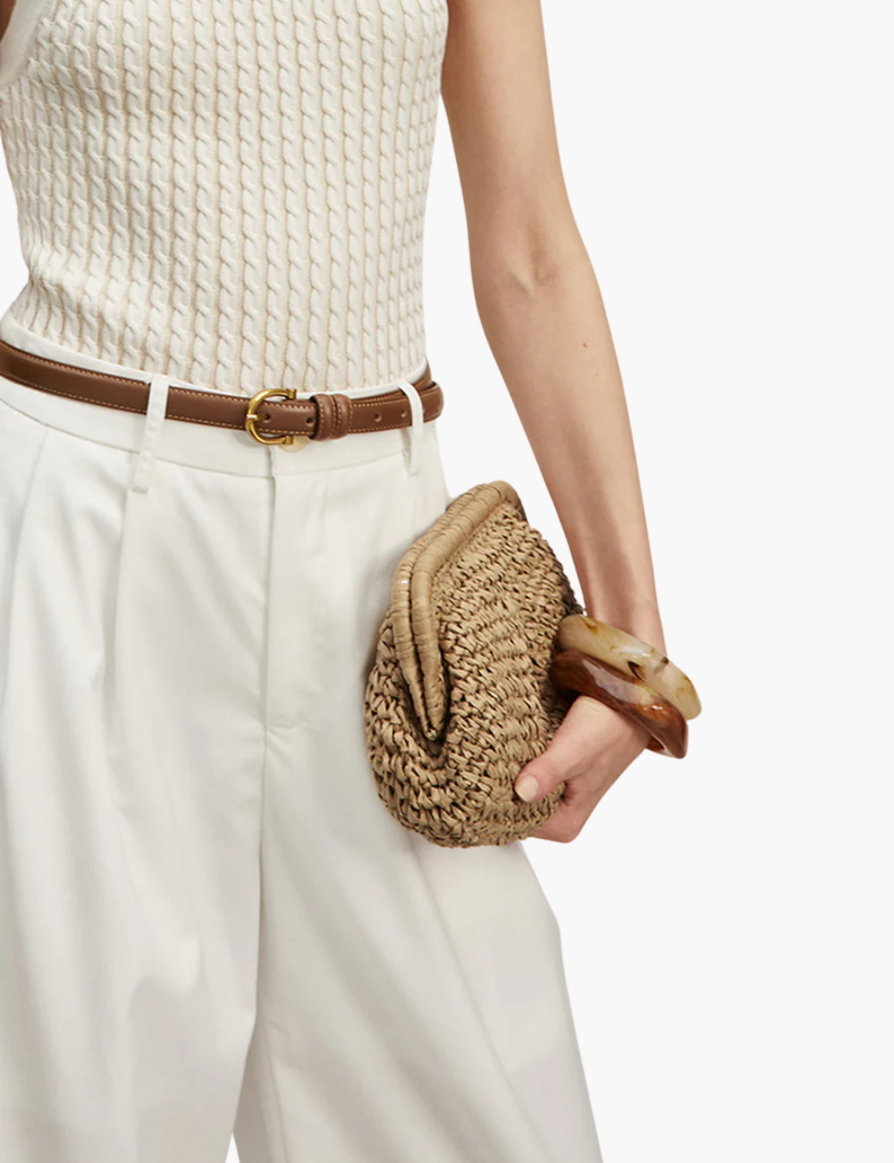 Gefertigt aus natürlichem Stroh, verleiht diese leichte Clutch deinem Look eine stilvolle Note mit einem Hauch von Boho-Charme – und hält deine Essentials jederzeit griffbereit. Ob tagsüber oder abends – sie vereint Stil und Funktion auf perfekte Weise.