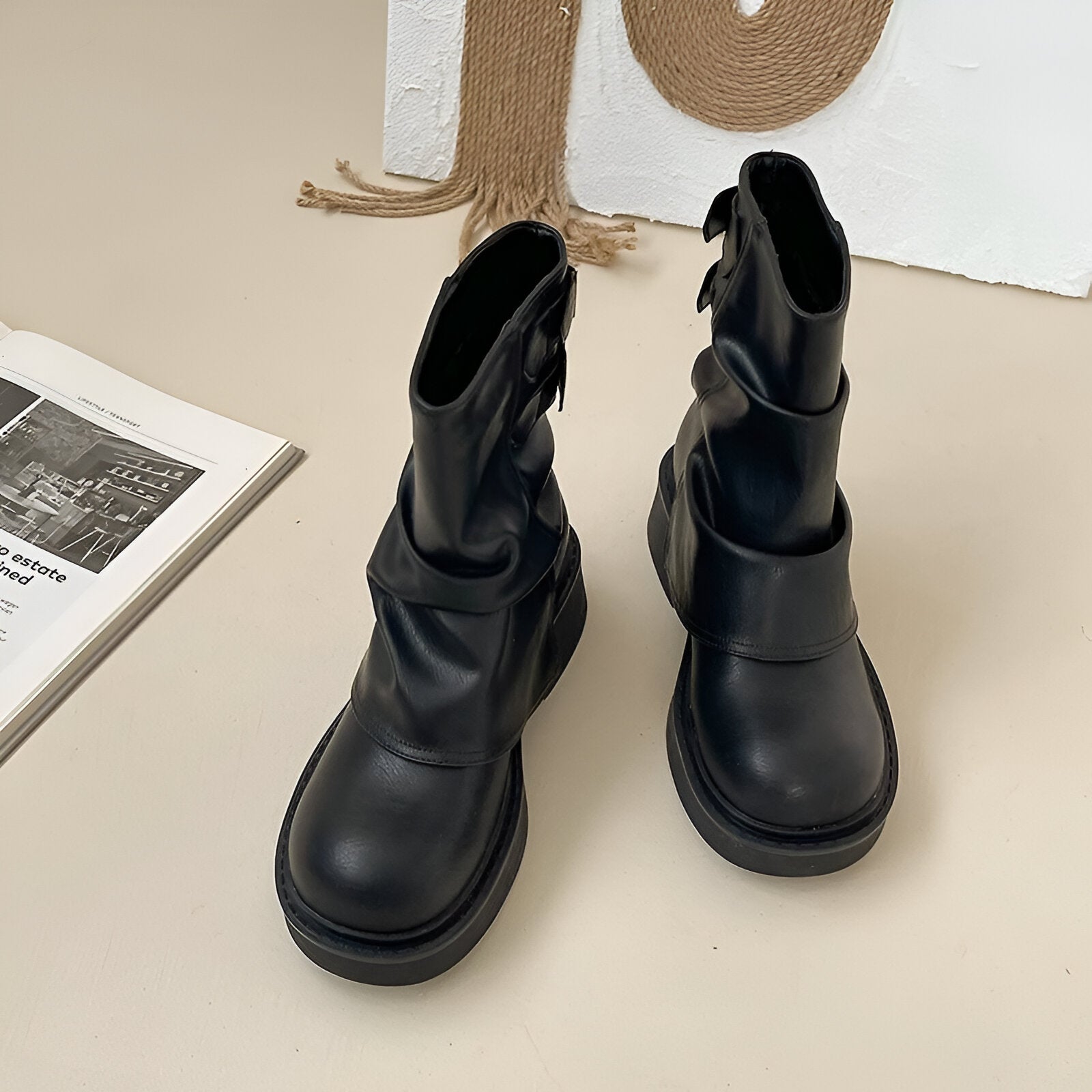 Das Plattform-Design und der Chunky-Absatz bieten hervorragenden Halt und Komfort, perfekt für den ganzen Tag. Du wirst es lieben, wie einfach es ist, in diesen stylischen Stiefeln zu laufen und dabei alle Blicke auf dich zu ziehen.