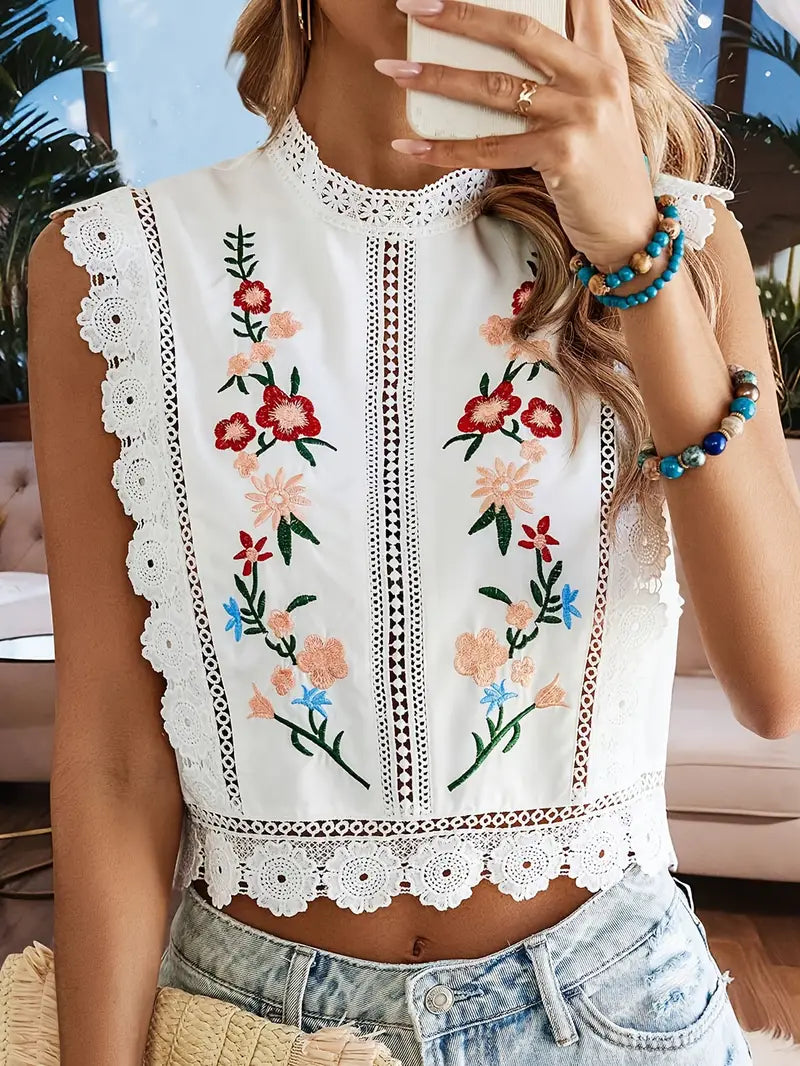 - Zarte florale Stickerei – Das filigrane florale Design verleiht dem Top einen eleganten Touch und macht es sowohl für lässige als auch für etwas schickere Looks ideal.
