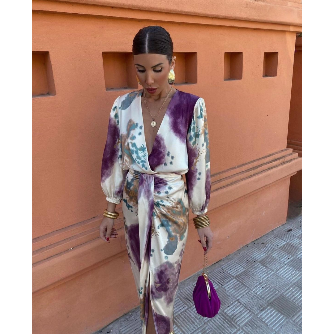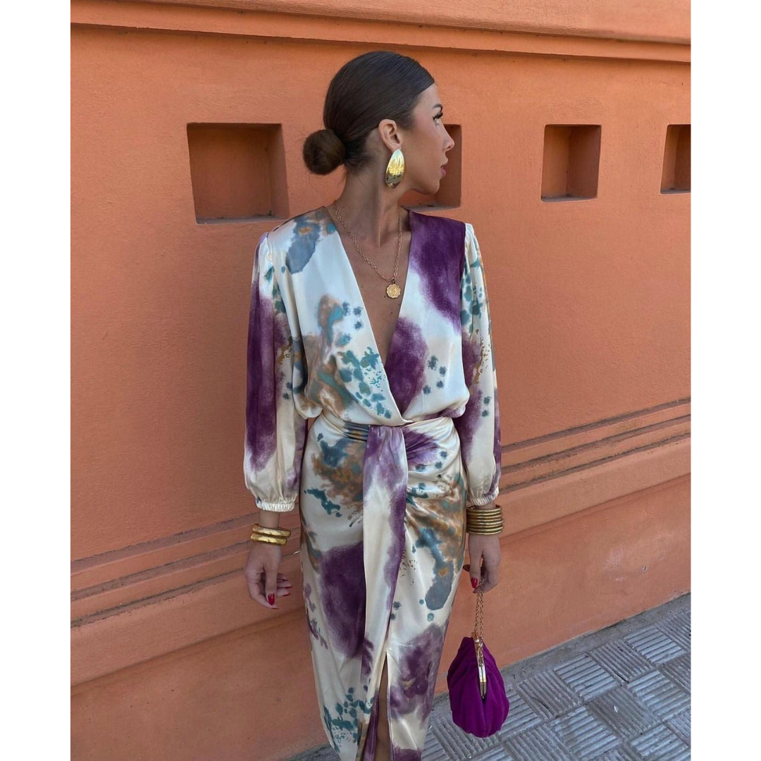 Diese feminine Silhouette, der schmeichelnde V-Ausschnitt und die feinen Details machen dieses Kleid zu einem echten Allrounder. Es begleitet dich stilvoll vom Dinner bis zur Feier, vom Stadtbummel bis zum besonderen Anlass. Mit jedem Schritt strahlst du Selbstbewusstsein, Ruhe und Klasse aus – ganz ohne Aufwand.