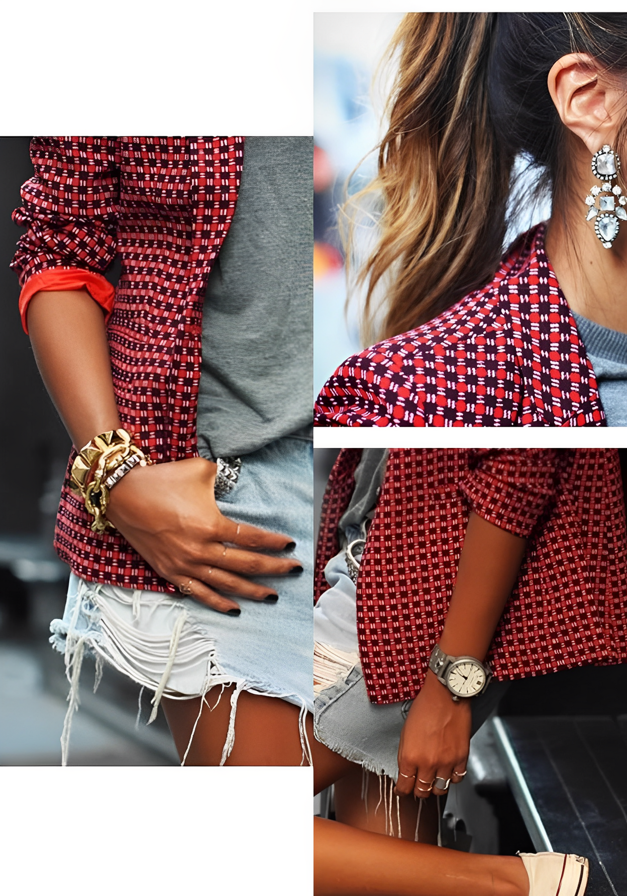 Giselle ist ein auffälliger rot-schwarzer Blazer, der die klassische Schneiderei mit einem modernen Touch neu definiert. Der Blazer besticht durch einen auffälligen Farbkontrast, eine taillierte Passform für eine schlanke Silhouette und Vielseitigkeit sowohl für berufliche als auch für modische Anlässe. Aus hochwertigen Materialien gefertigt, schafft Giselle die perfekte Balance zwischen kühnem Design und zeitloser Eleganz und ist damit die ideale Wahl für alle, die Selbstvertrauen und einen dynamischen Stil suchen. Treten Sie mit Giselle ins Rampenlicht und setzen Sie ein Zeichen, wo immer Sie hingehen.