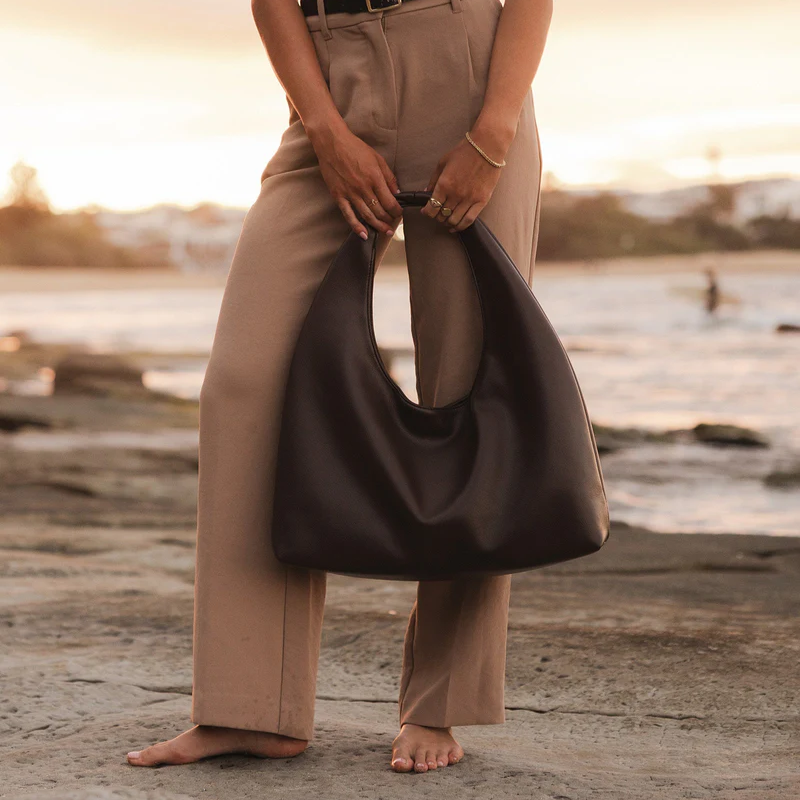 Unsere besonders weiche Handtasche aus veganem Leder fühlt sich luxuriös an. Mit ihrer großzügigen Form und dem eleganten Design bietet sie Platz für alle Alltags-Essentials und überzeugt gleichzeitig mit Stil und Klasse.