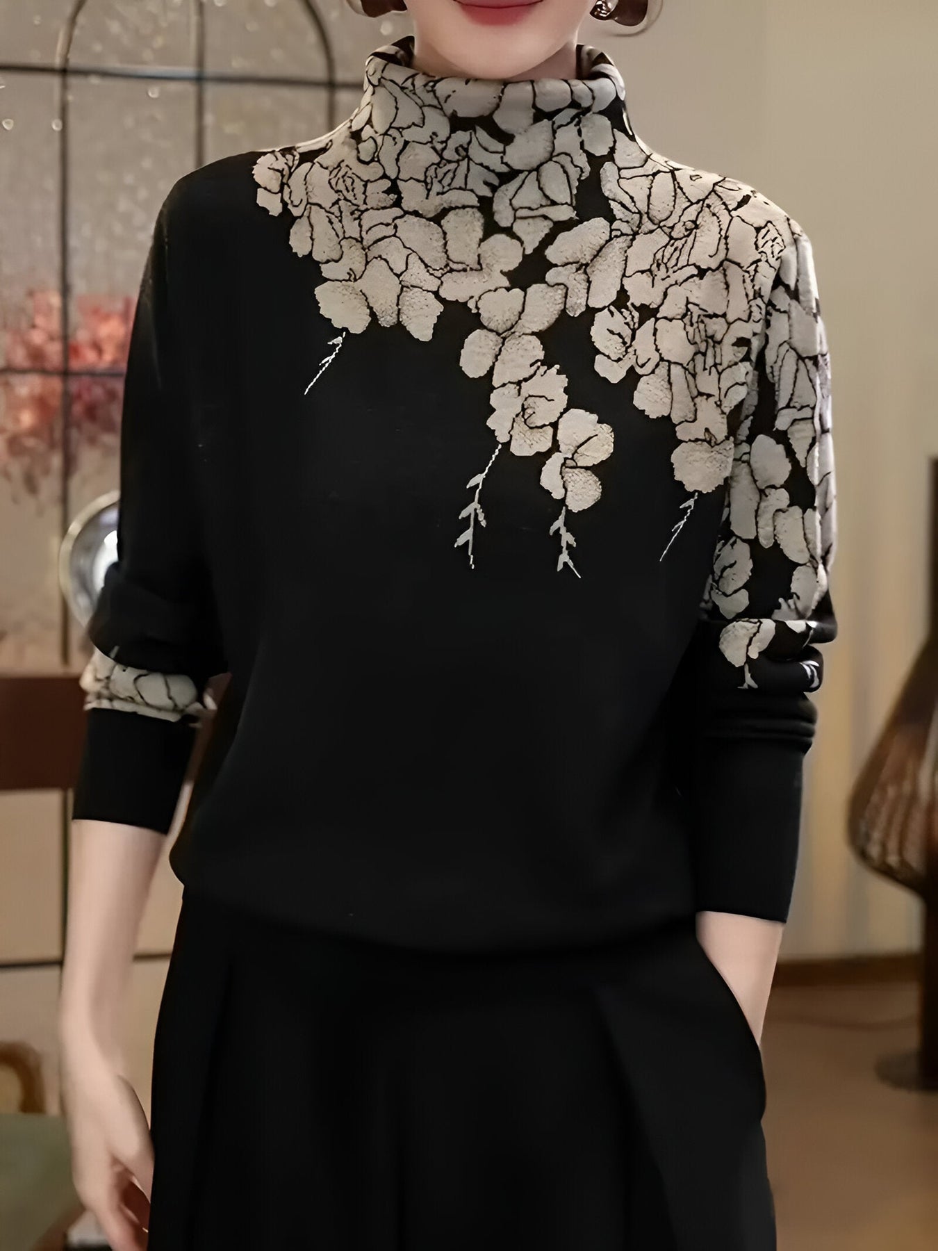 Stell dir vor, du hüllst dich in die Wärme und Eleganz eines gemütlichen Rollkragenpullovers. Mit seinem kunstvollen floralen Jacquard-Design und der weichen Stricktextur bringt dieses Stück mühelos Stil in deine Herbst- und Wintergarderobe. Ob du heiße Schokolade am Kamin trinkst oder bei einem Spaziergang in der frischen Luft unterwegs bist, dieser Pullover ist dein perfekter Begleiter für sowohl Komfort als auch schicke Ausstrahlung.