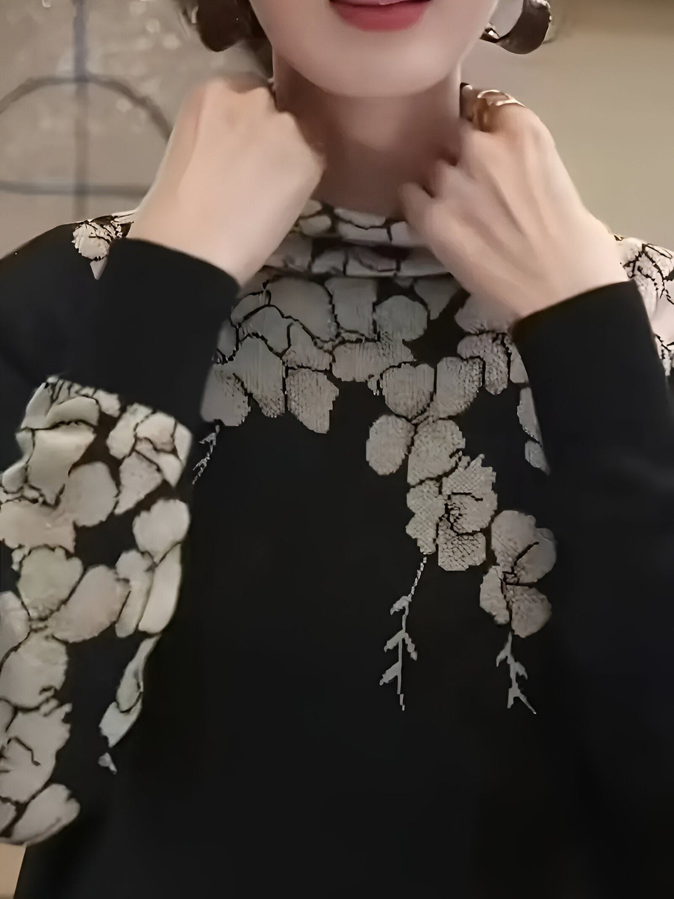Das wunderschön gewebte florale Muster verleiht dem Pullover eine elegante Note und macht ihn perfekt für sowohl entspannte Ausflüge als auch gemütliche Stunden zu Hause.