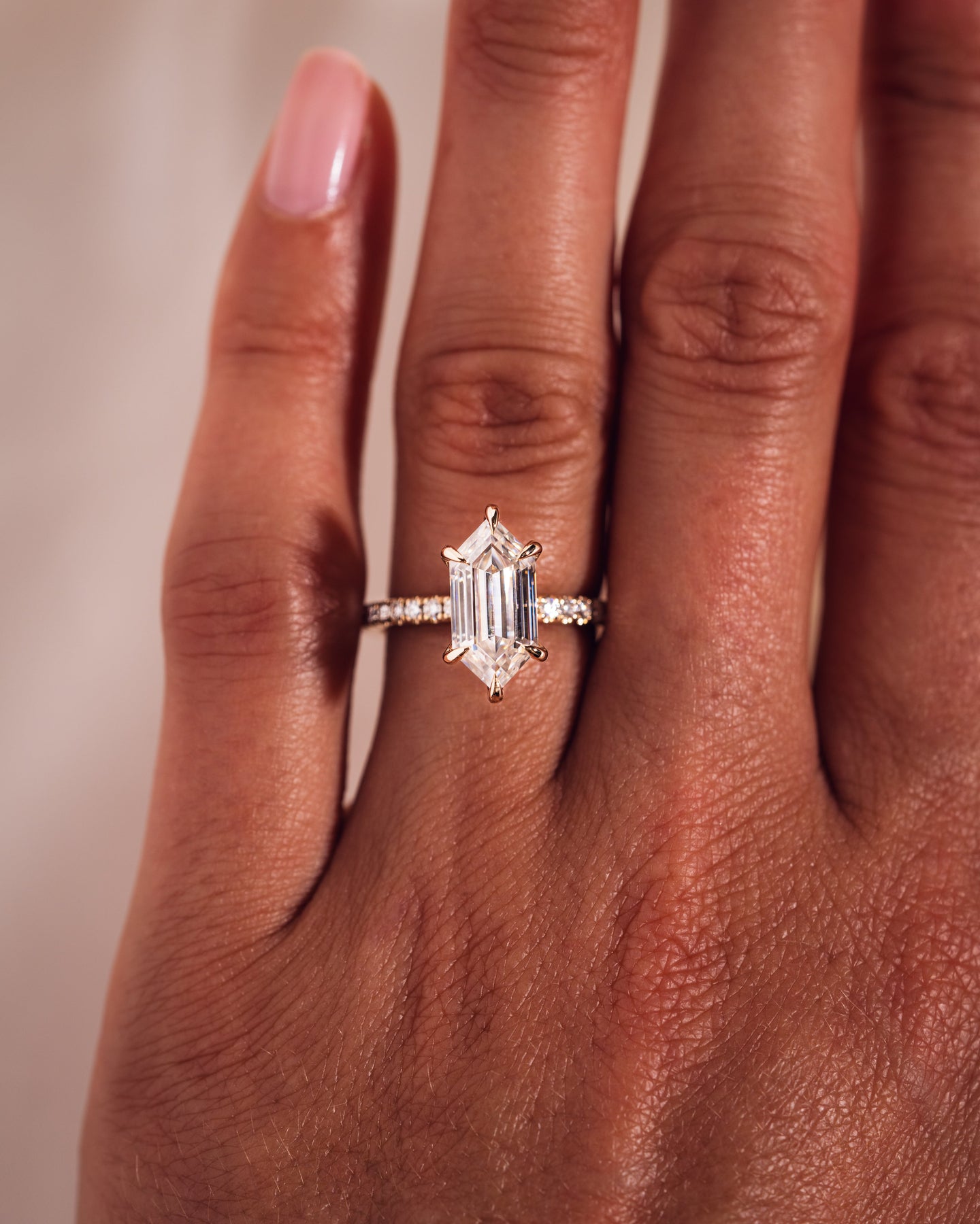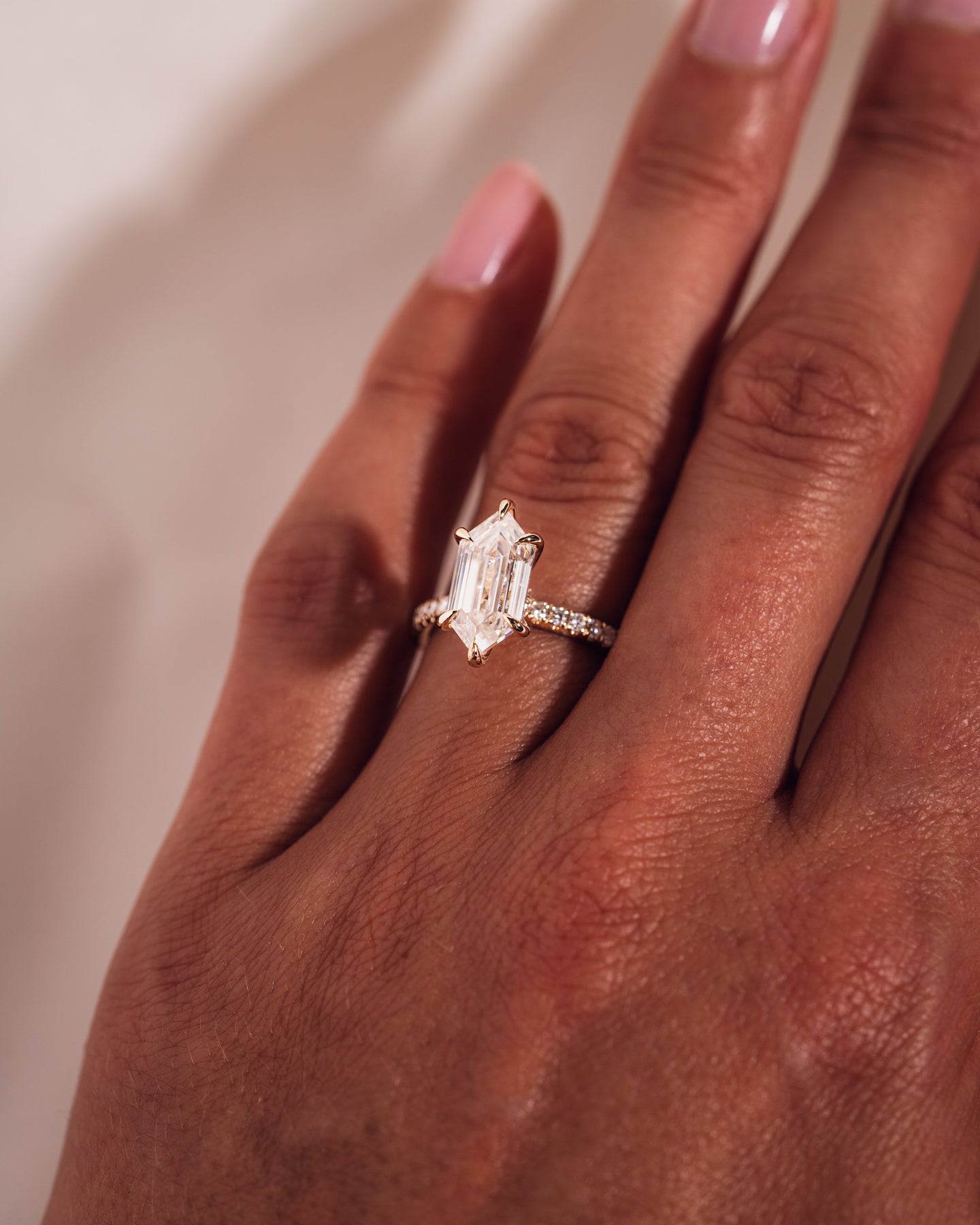 Nachhaltiger, konfliktfreier und brillanter Moissanit-Verlobungsring. Kostenloser Versand weltweit für alle Bestellungen.