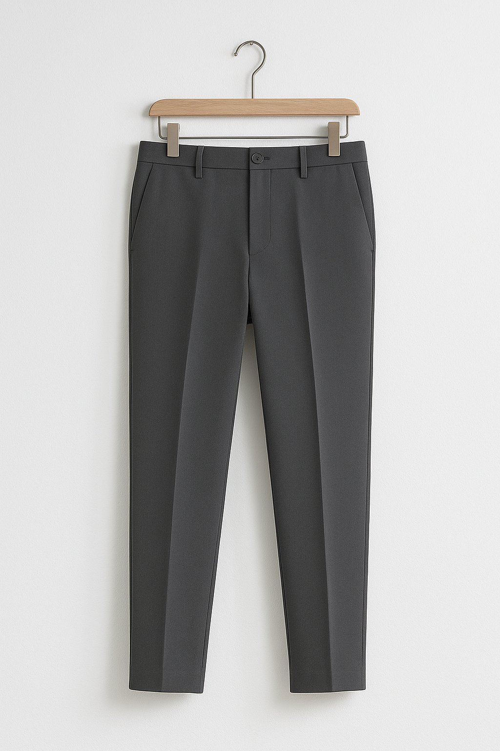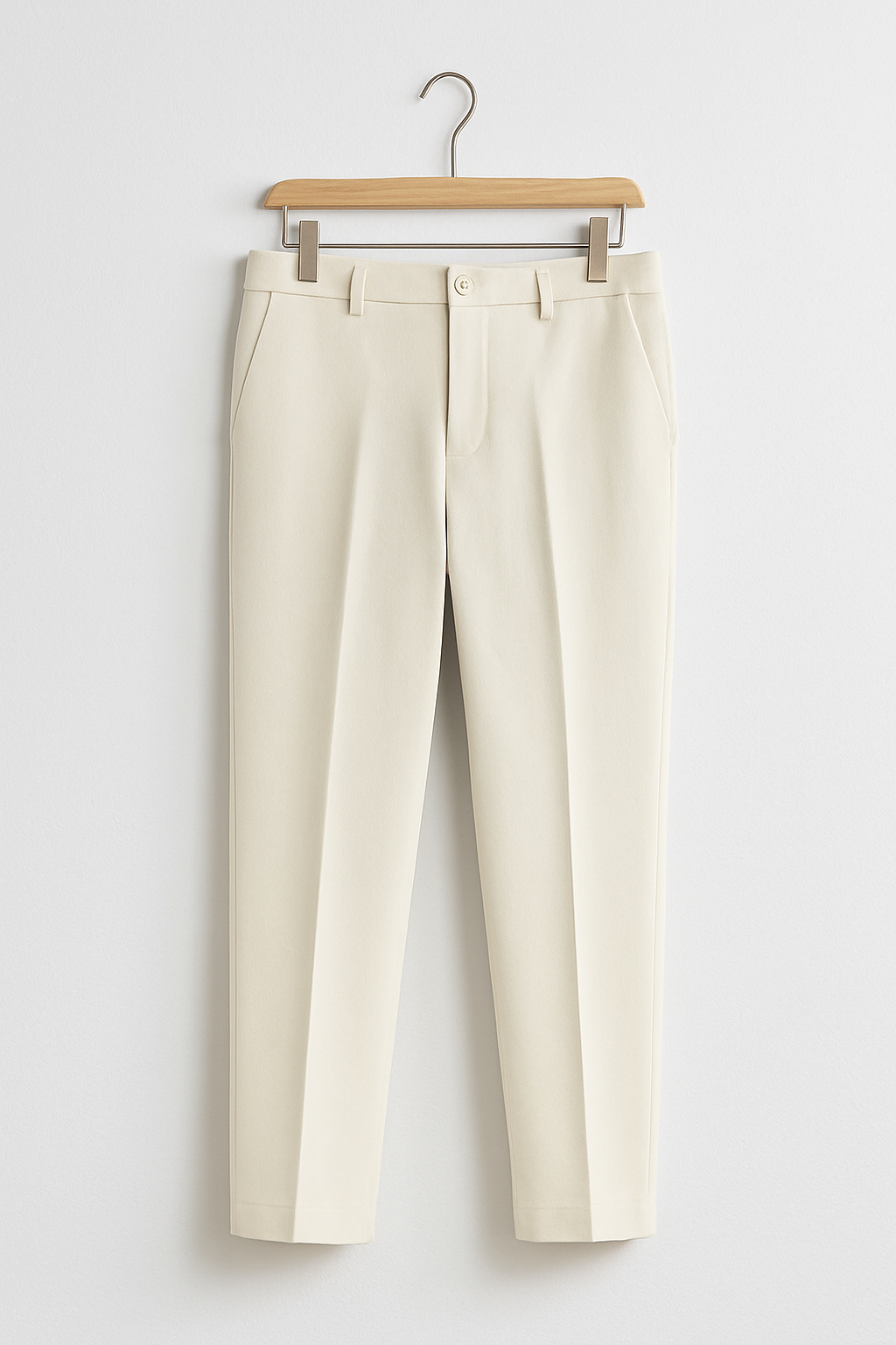 Der schmale Schnitt mit Bügelfalte sorgt für eine klare Silhouette, während das hochwertige Material Bewegungsfreiheit und Komfort bietet. Ideal für formelle Anlässe oder stilvolle Office-Looks.