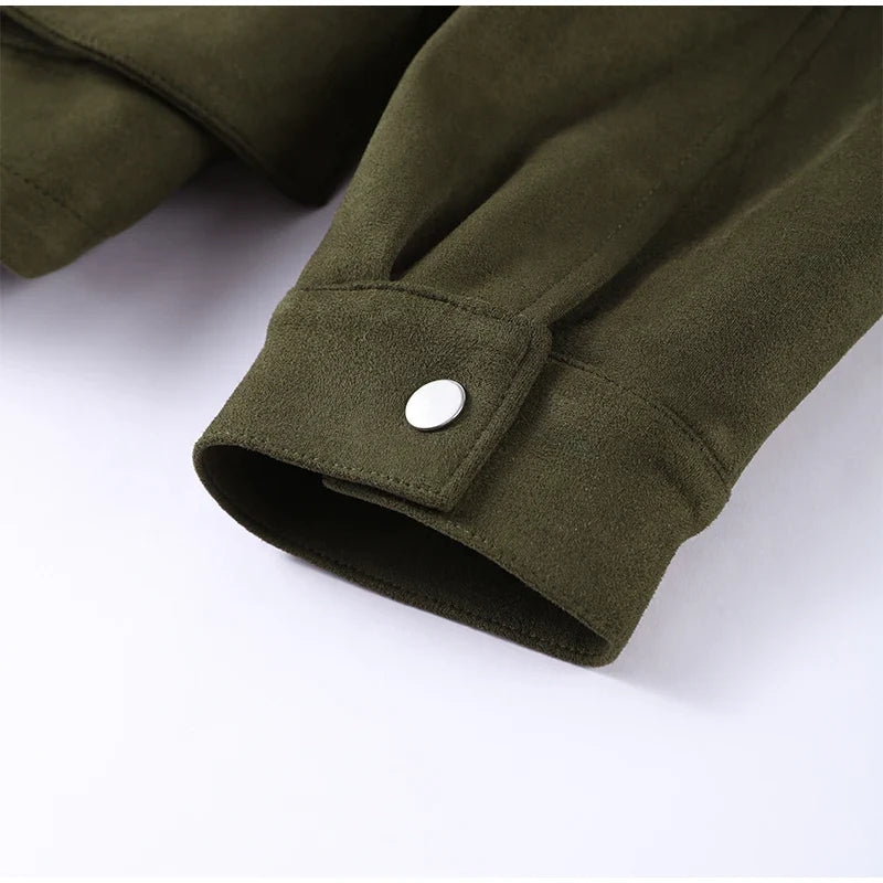 Diese kunstwildleder jacke bringt cleanen minimalismus und city-chic zusammen. der weiche velourslook fühlt sich angenehm an und verleiht jedem outfit sofort struktur. praktische taschen und ein stabiler reißverschluss machen sie alltagstauglich – perfekt zu jeans, boots oder office-basics.