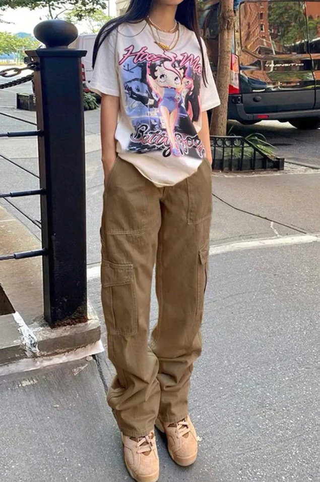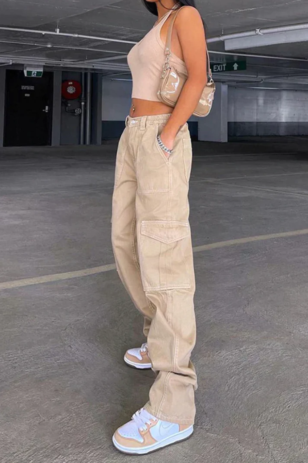 Stylische Damen-Cargohose von Karley. Entworfen mit modernen Details und praktischen Taschen. Aus strapazierfähigem Material für einen bequemen und trendigen Look.