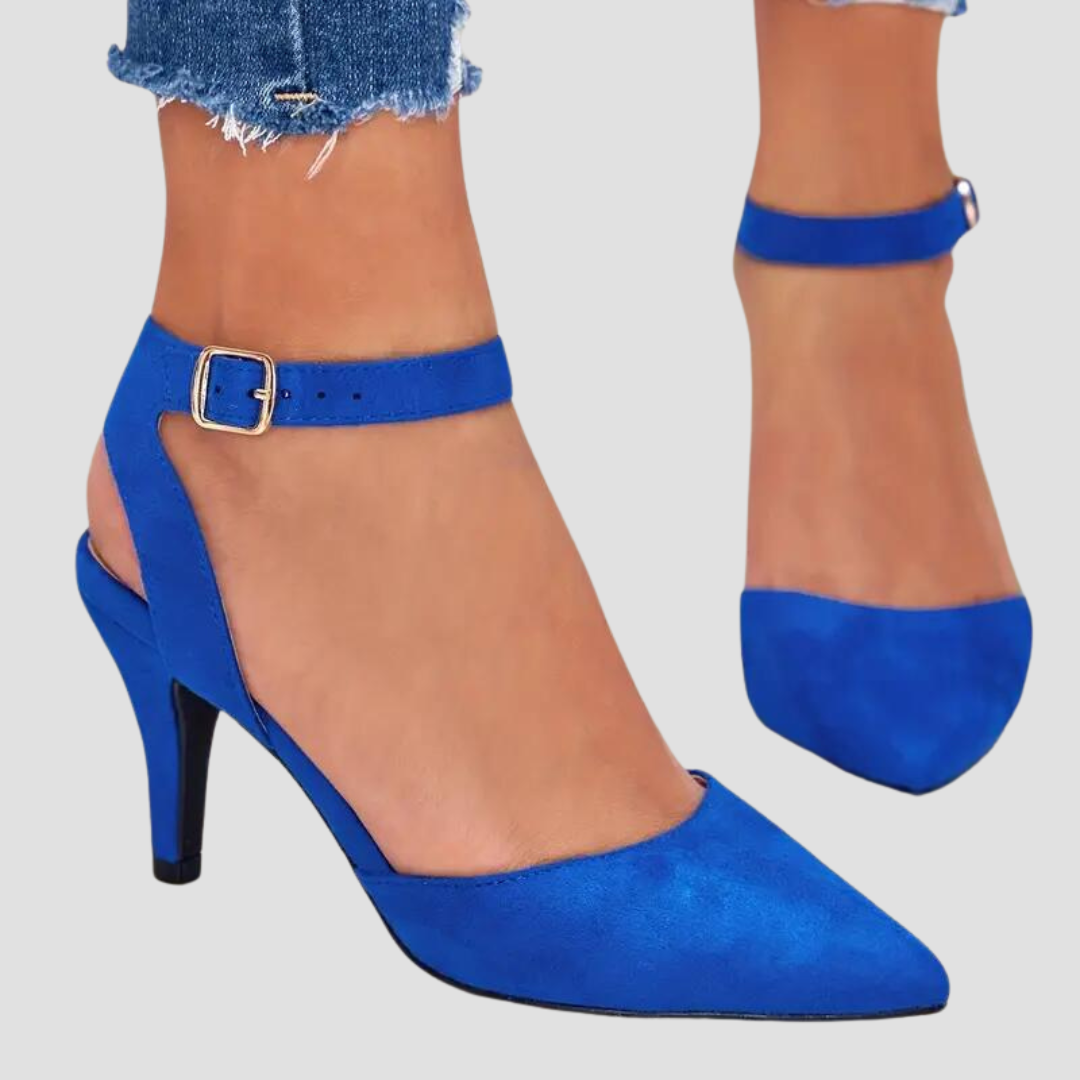 Naima™ - Elegante Sandaletten Mit Absatz, Doppelte Knöchelriemen & Spitz Zulaufend, Wildleder-Optik