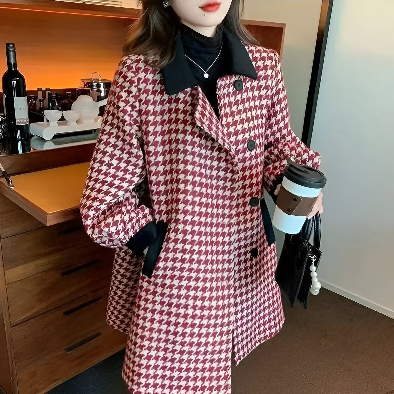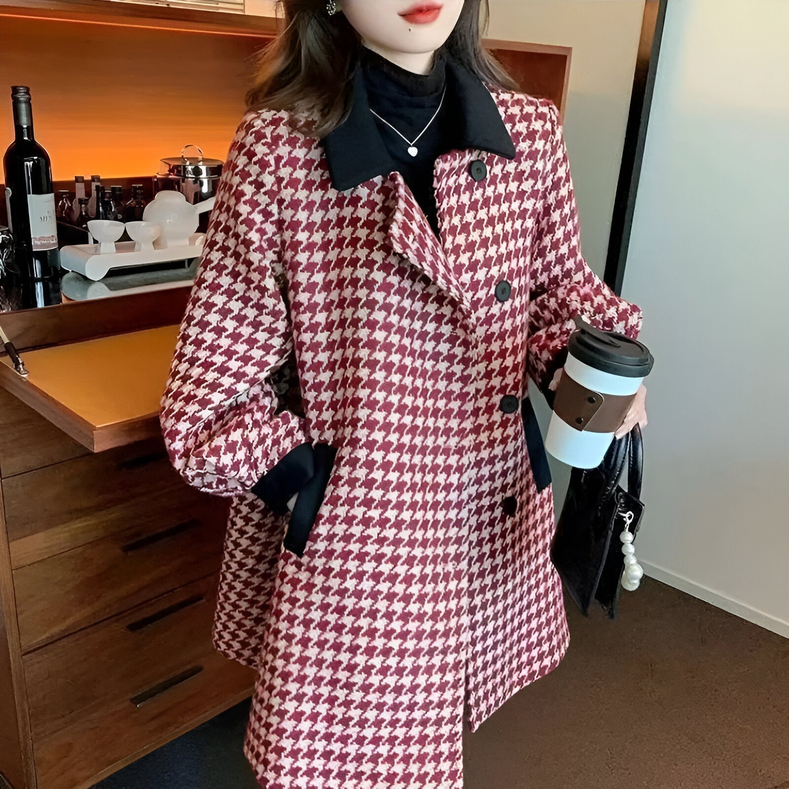 Mit seinem lebendigen, roten Samtkaromuster bringt dieser Außenmantel einen einzigartigen Farbtupfer in deine Garderobe. Das karierte Muster verleiht dir einen raffinierten Touch und lässt dich bei jeder Gelegenheit mühelos schick aussehen.