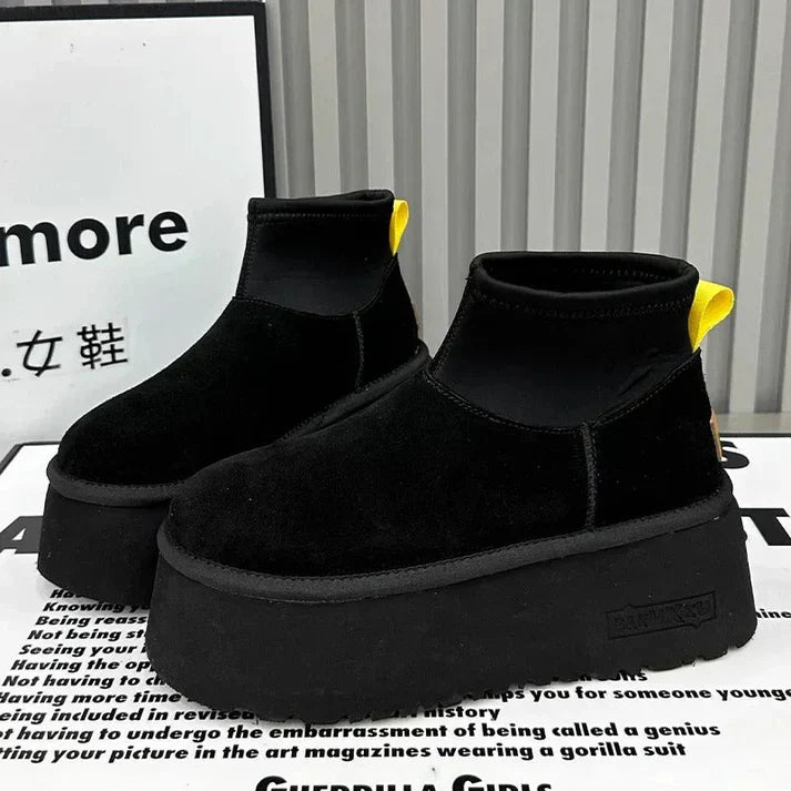 Die Plüschstiefel aus Baumwolle und Wildleder bieten Stil und Komfort. Perfekt für modebewusste Damen, die Wärme und Eleganz suchen.