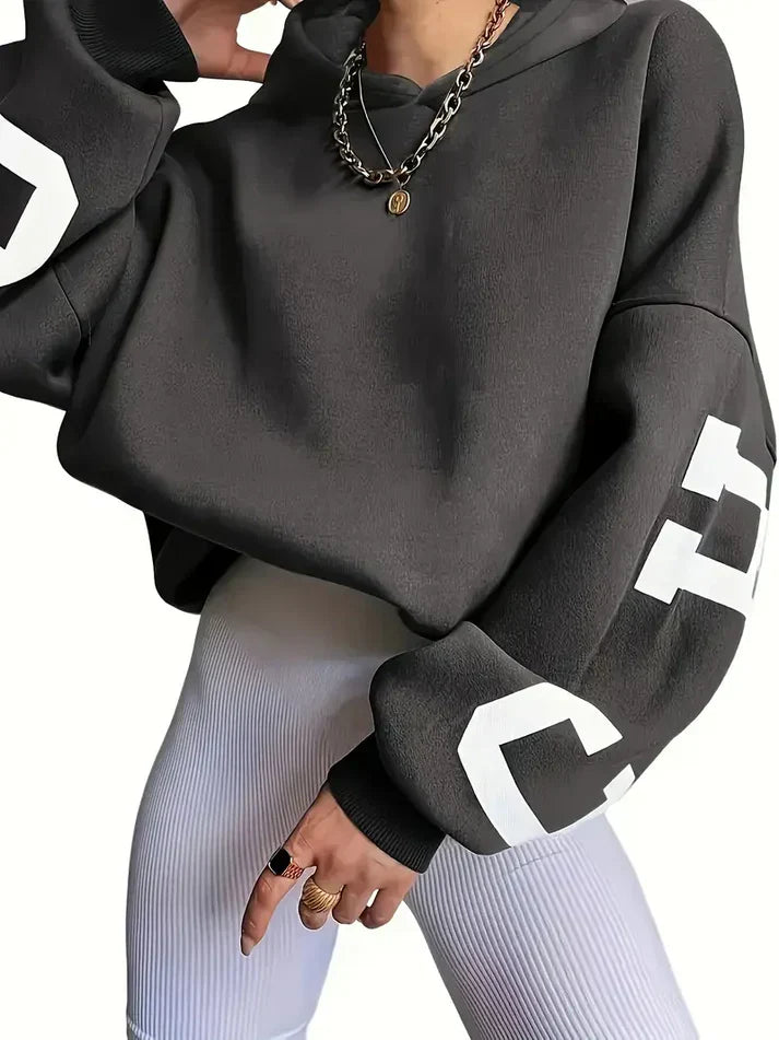Der Pullover mit übergroßem Design und langen Ärmeln hat ein modernes Textlogo auf dem Ärmel. Perfekt für einen lässigen und trendigen Look.
