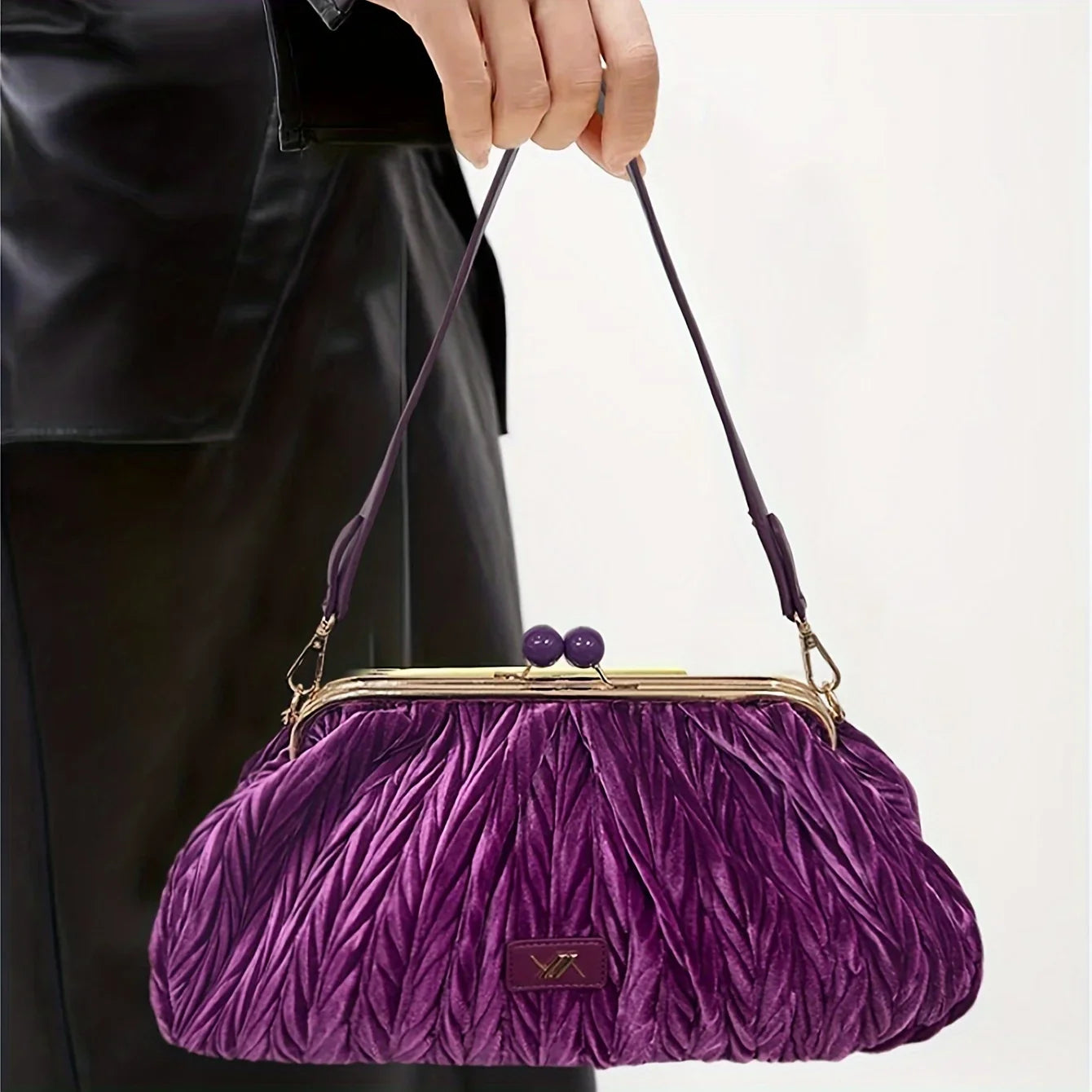Entdecken Sie die Retro Damen Schultertasche aus luxuriösem Samt, verziert mit einem eleganten Bambusblatt. Diese stilvolle Tasche ist nicht nur ein modisches Accessoire, sondern bietet auch genügend Platz für all Ihre essentials, was sie zur idealen Wahl für Weihnachtsfeiern und besondere Anlässe macht.