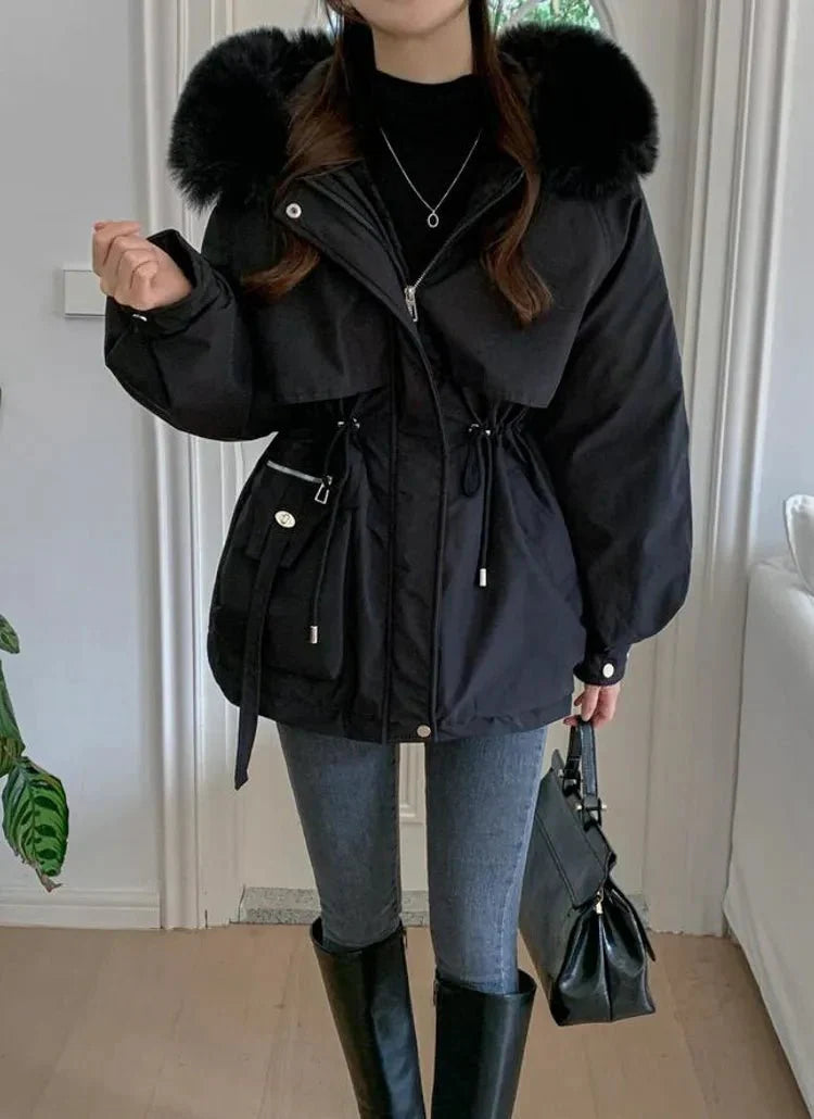 - Kunstfellkapuze für einen luxuriösen, stylischen Look.
