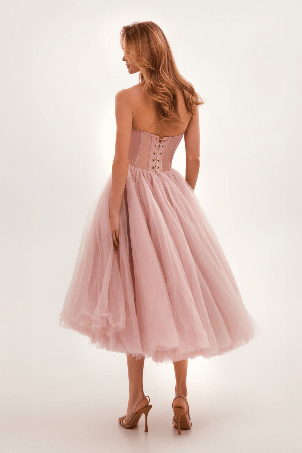 • Details: Transparenter Korsett-Effekt, mehrlagiger Rock aus Tüll