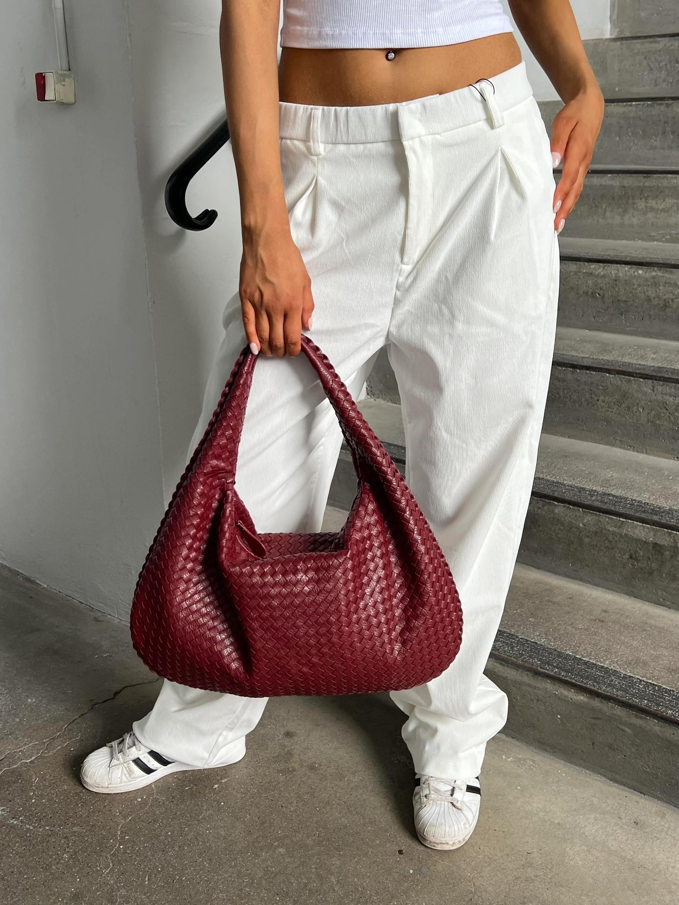 Die geflochtene Alltagstasche – dein perfekter Begleiter für die täglichen Aufgaben, von der Arbeit bis zum Erledigen von Besorgungen.