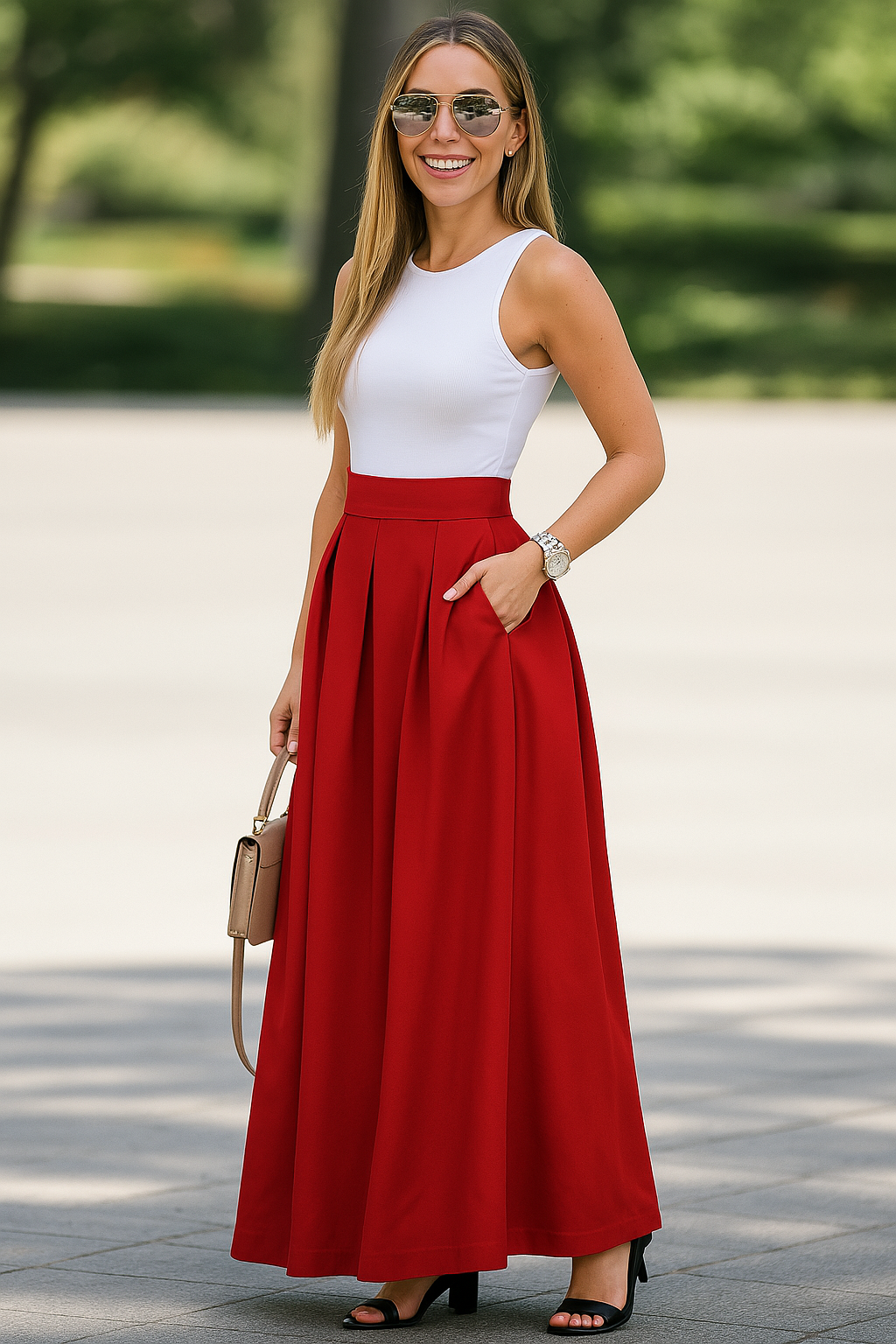 Stuttgart | Unifarbener Faltenrock mit hoher Taille