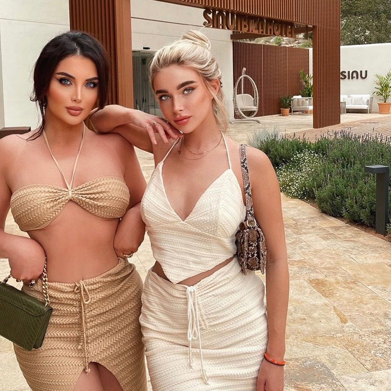 In diesem Frühjahr können Sie in einem Ensemble im Boho-Chic glänzen, das mit seinem zarten Häkelstoff und dem figurschmeichelnden, taillierten Design Eleganz und Komfort vereint. Mit einem Rock mit hoher Taille und einem Oberteil mit V-Ausschnitt und dünnen Trägern ist Valentina die perfekte Wahl für Mahlzeiten im Freien, Spaziergänge an der Küste und besondere Veranstaltungen.
