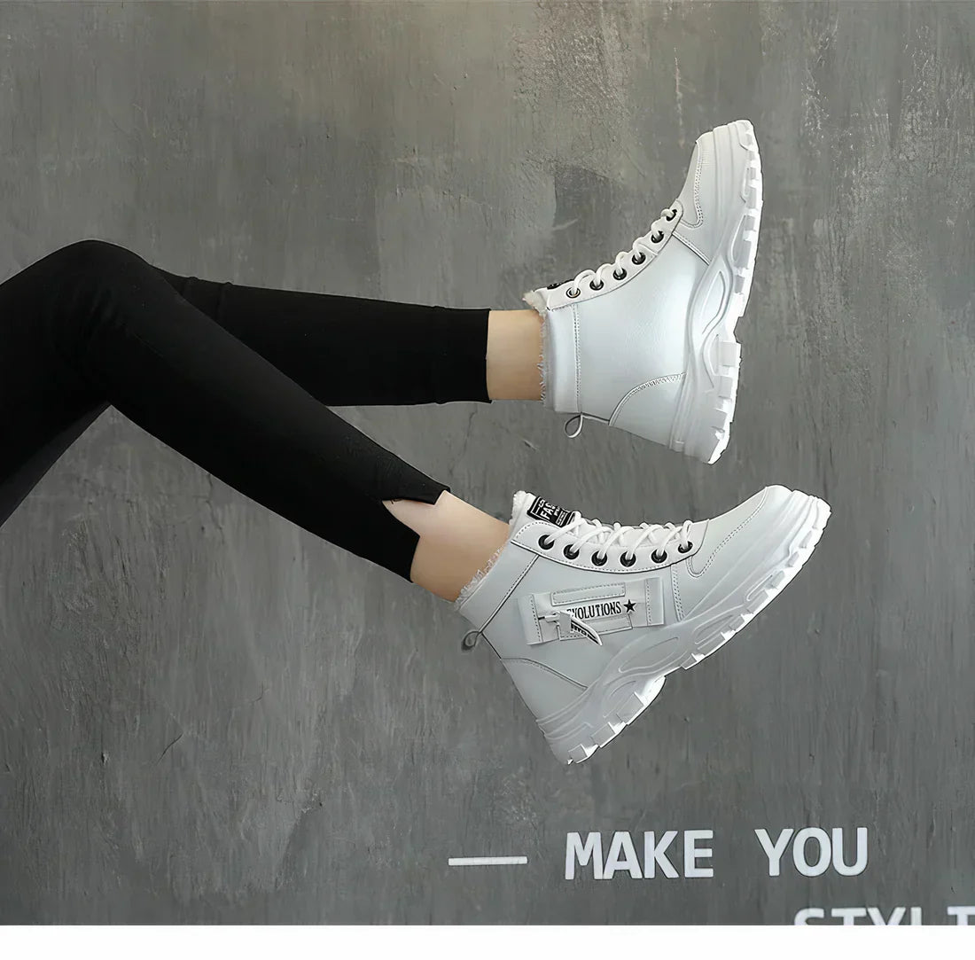 Flauschige Winterstiefel mit Schnürsenkeln für Damen – vereinen Wärme, Komfort und einen stylischen Look für kaltes Wetter.