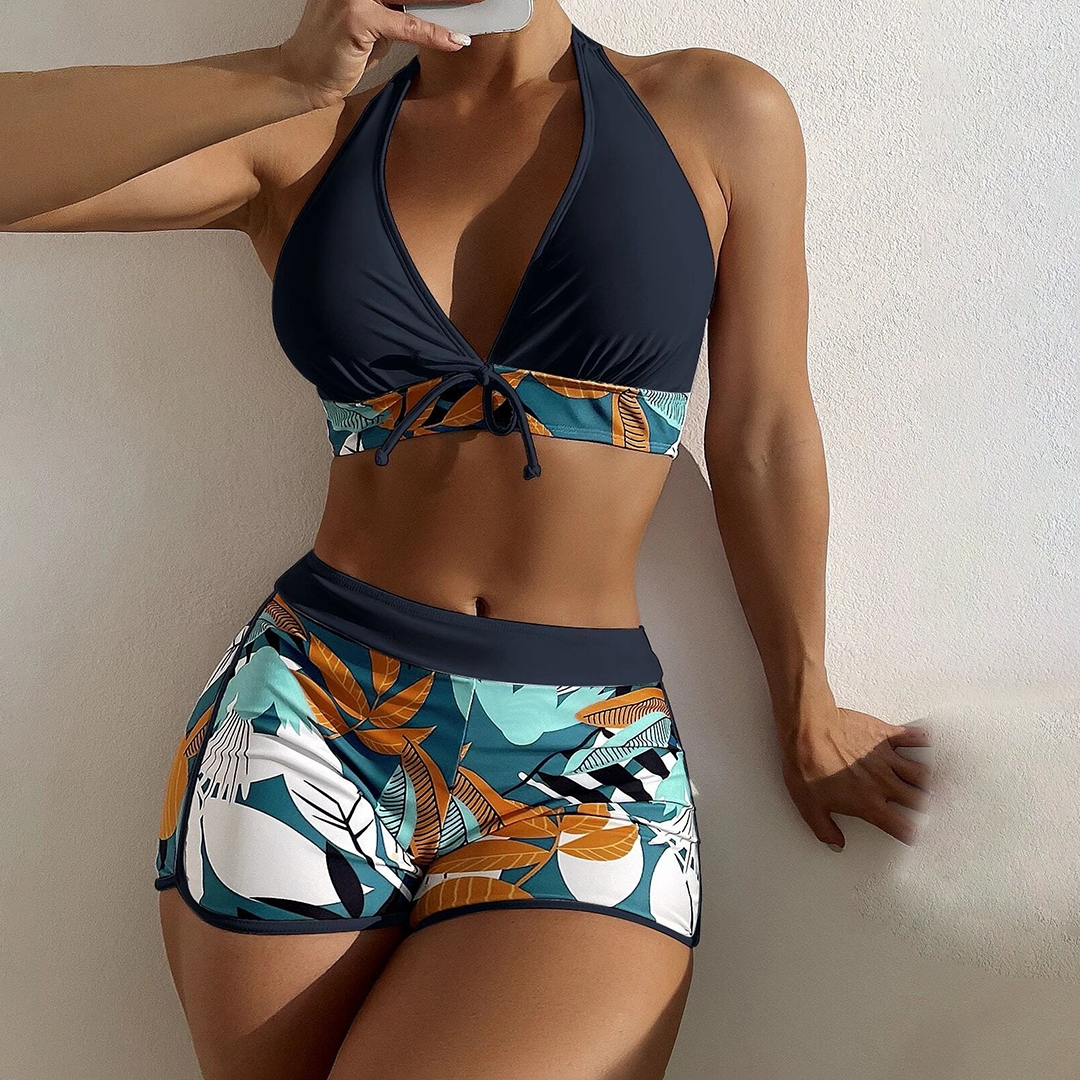Der "Zenia" Zweiteilige Badeanzug für Frauen vereint modisches Design mit optimaler Funktionalität und ist die perfekte Wahl für stilbewusste Frauen, die sich gerne am Pool oder am Strand zeigen. Dieser Badeanzug bietet nicht nur eine ansprechende Optik, sondern auch höchsten Tragekomfort. Das Oberteil des Badeanzugs präsentiert sich mit einem trendigen Schnitt und sorgt für eine elegante Silhouette. Die Verstellbarkeit der Träger ermöglicht es Ihnen, die Passform individuell anzupassen. Die dazu passende Bikinihose vervollständigt den Look und betont vorteilhaft Ihre Figur.
